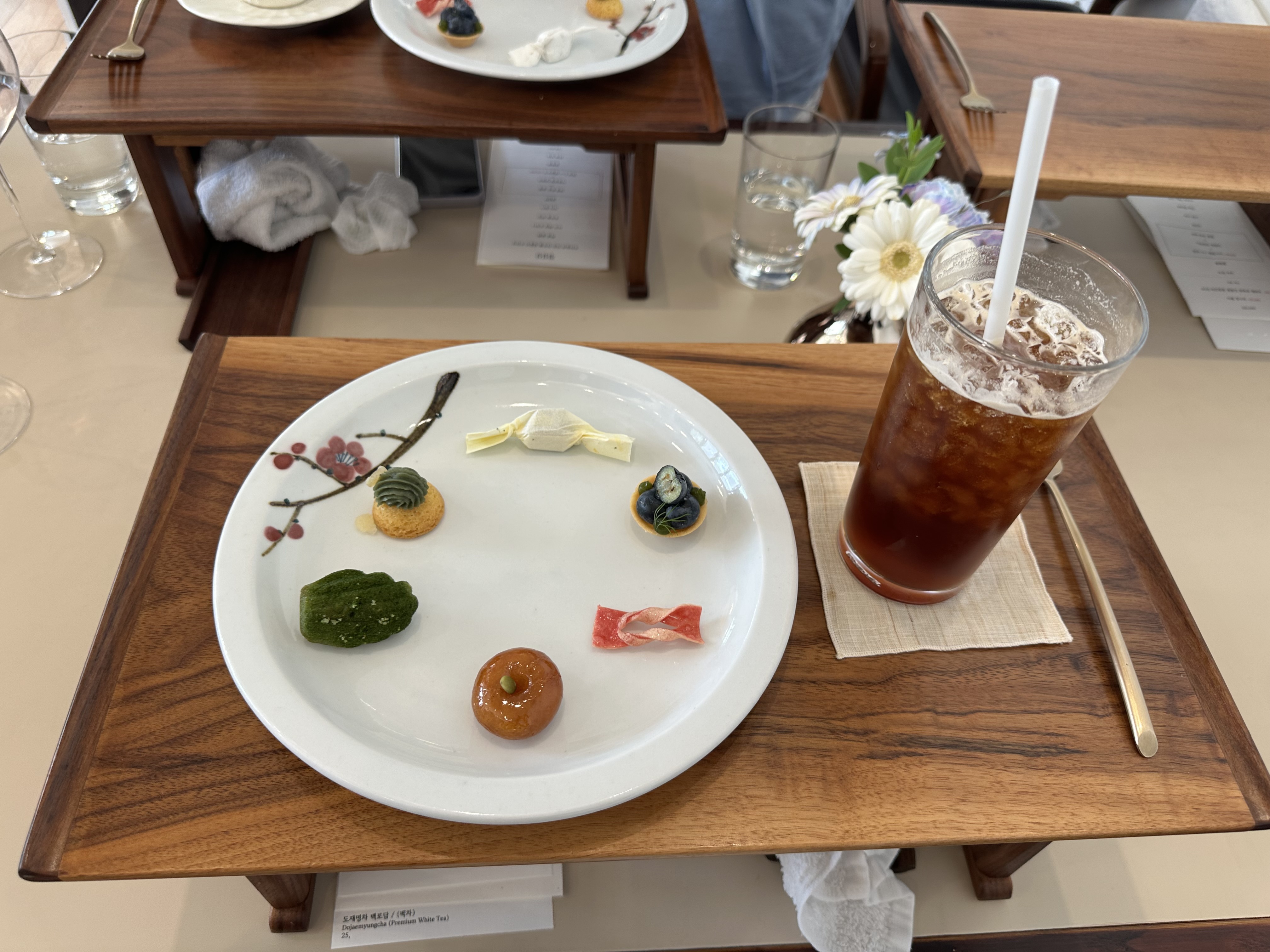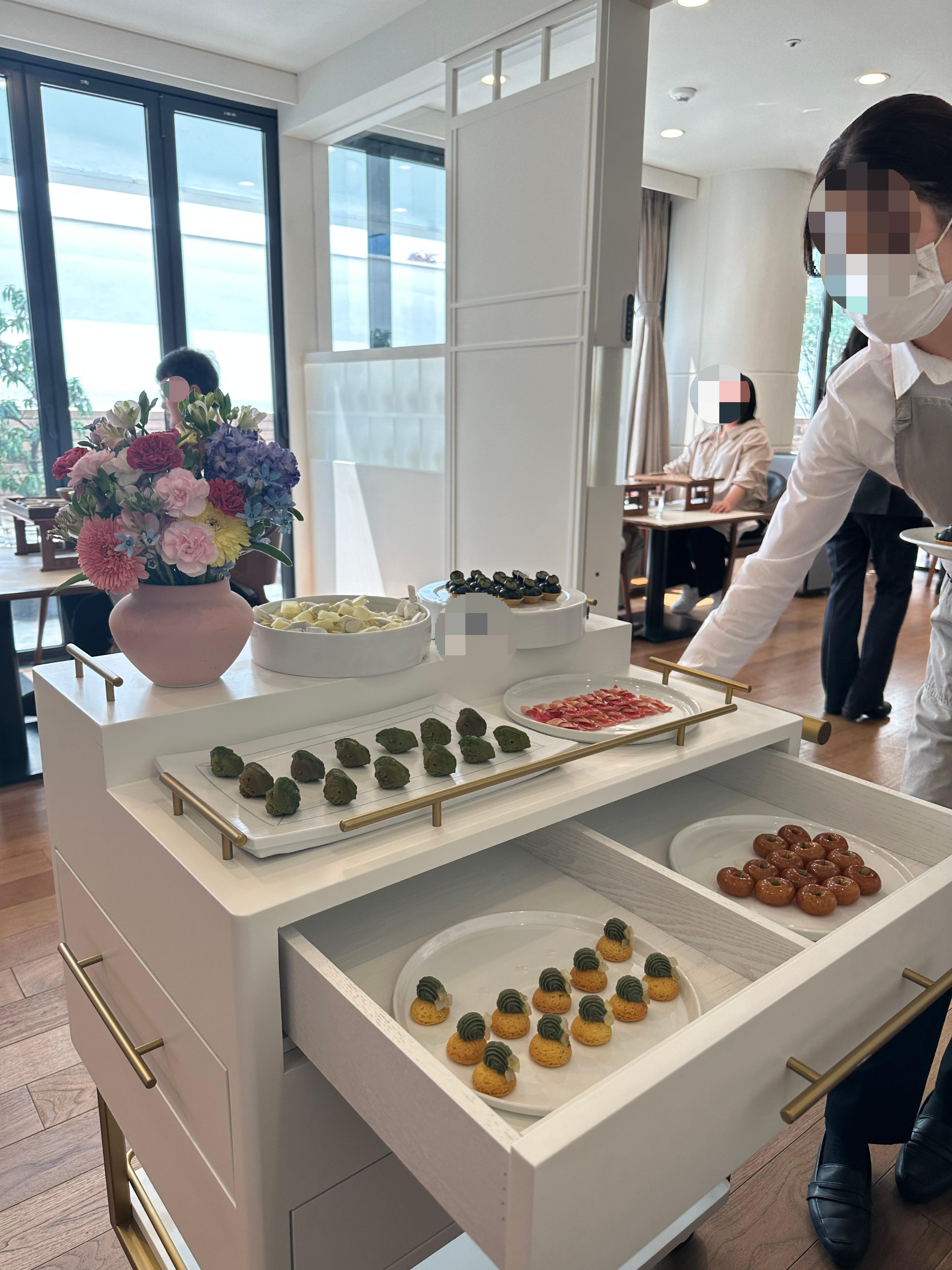 마지막엔 다양한 전통 다과가 실린 카트를 직접 테이블로 가져다주며 하나씩 설명해 주십니다.