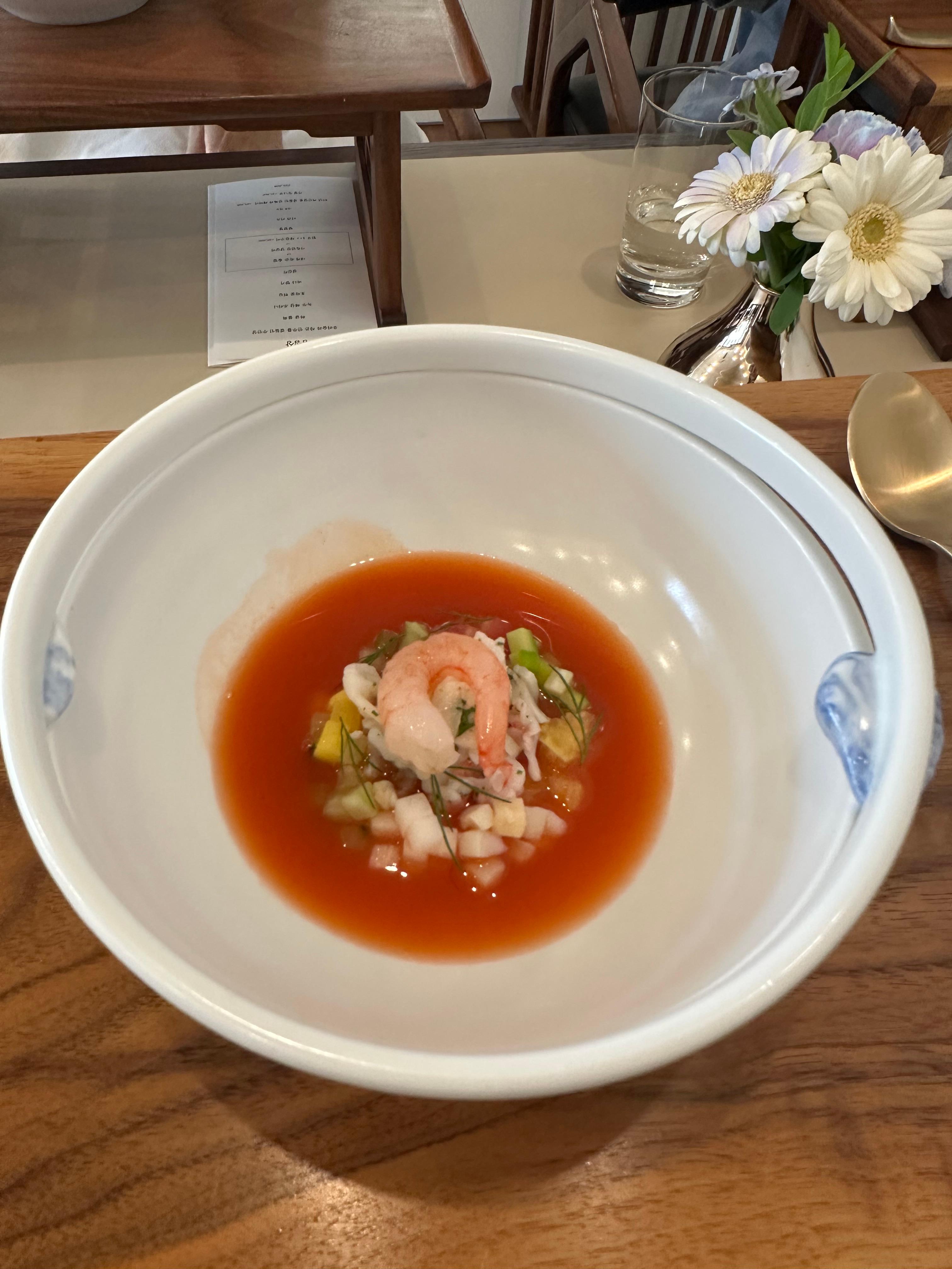 여름 한정으로 제공되는 메뉴라고 합니다. 제주산 하귤과 도미, 오리, 메론, 게살 등이 어우러져
