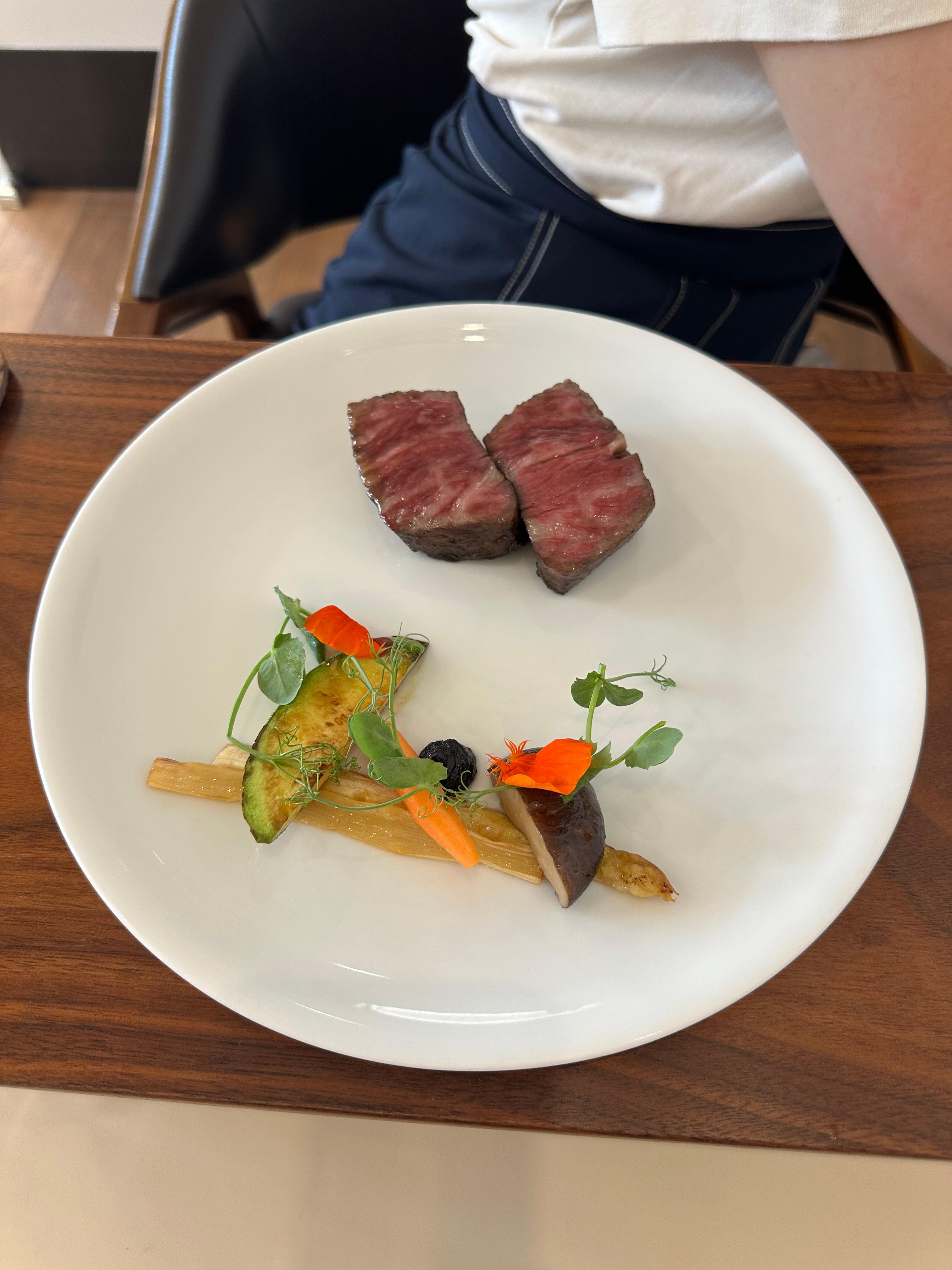 한우 채끝은 미디엄 레어로 완벽하게 익혀 나왔고, 식감도 훌륭했습니다.